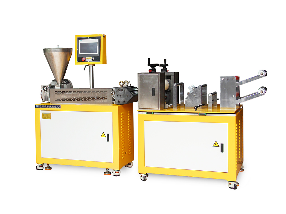 本機主要由主驅動電機、傳動裝置、擠出裝置、加料斗、電控系統(tǒng)、流延模頭、兩輥壓延等組成.